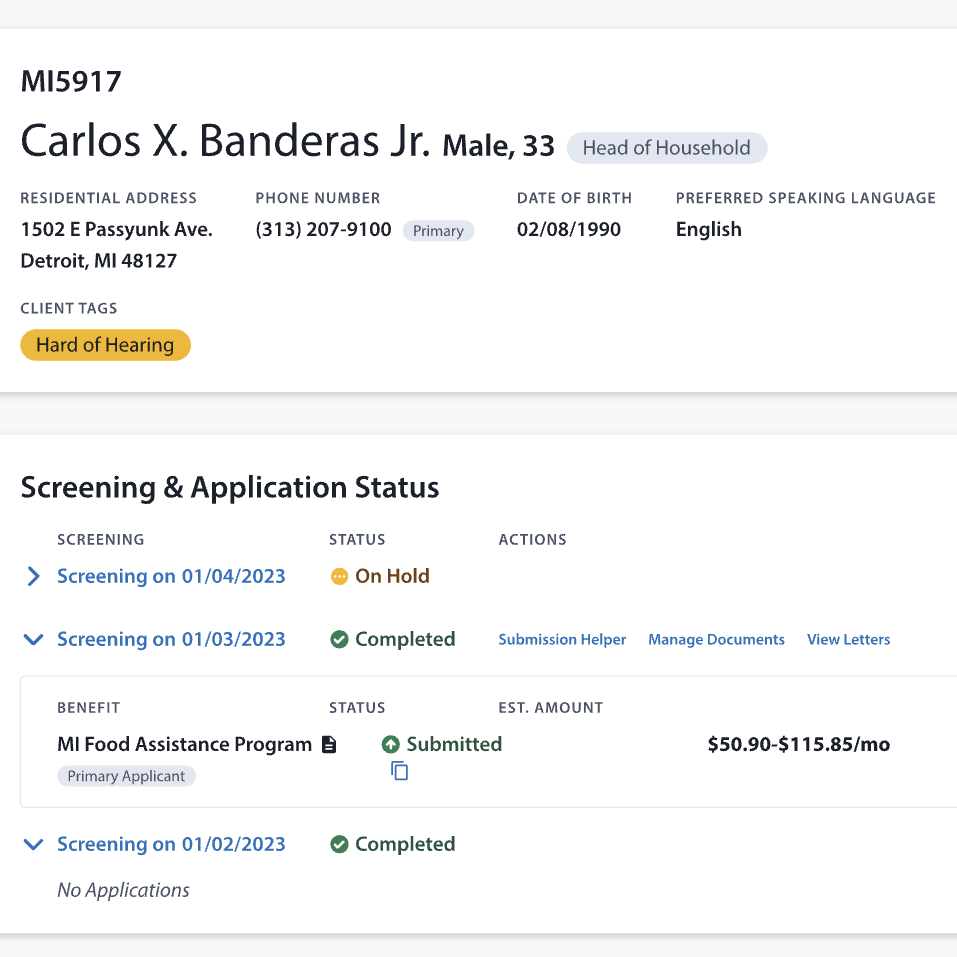 A national nonprofit that connects eligible people to government programs was using proprietary support center software to screen and apply people for public benefits.
